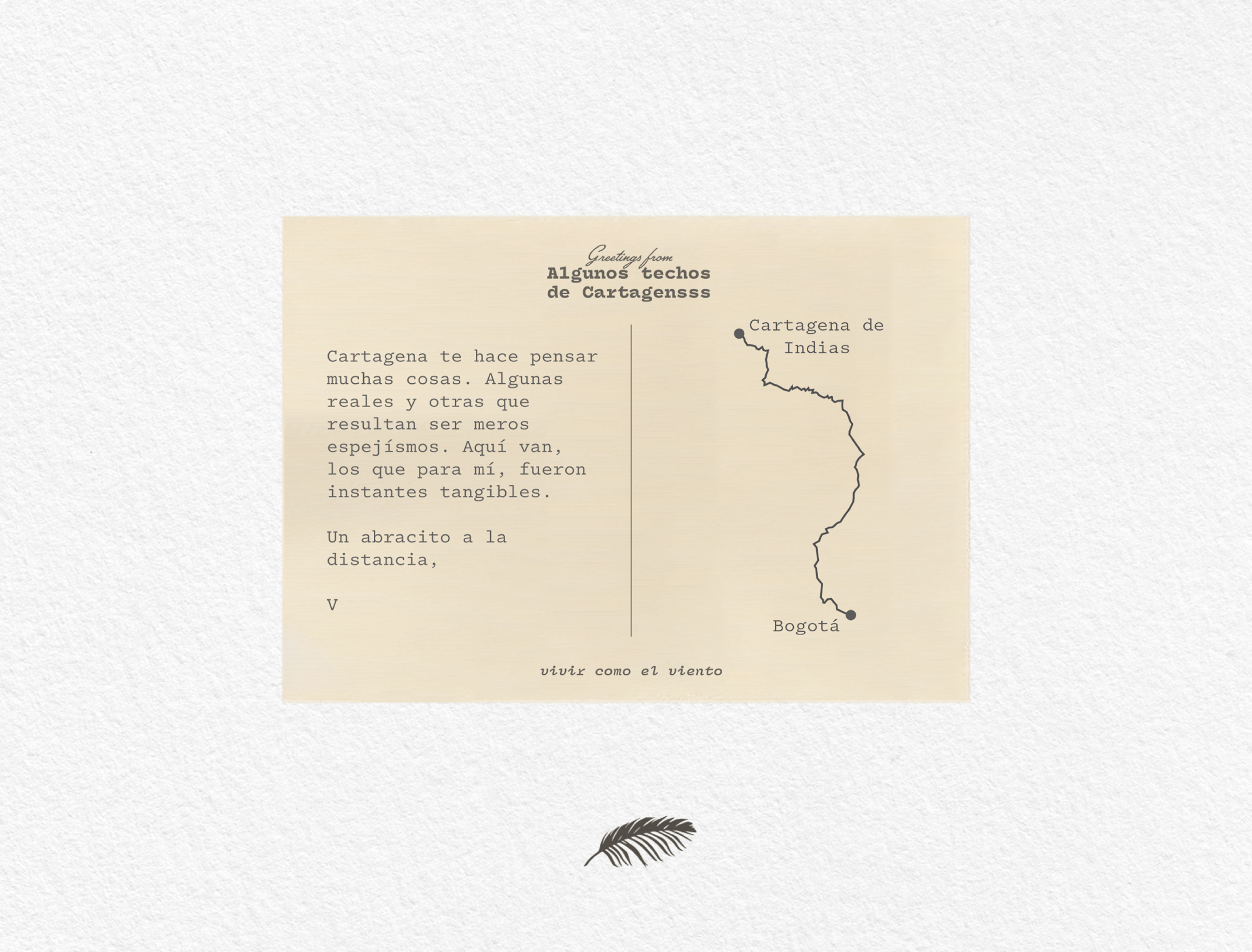 Partiendo de una amplia colección de fotografías tomadas a lo largo de los últimos cuatro años, esta serie rescata del olvido los recuerdos de viajes por distintas regiones de Colombia. Lugares que he pisado más de una vez, y otros que fueron apenas una primera estancia, se entrelazan aquí intentando contar un relato donde la memoria y la percepción subjetiva se funden con el ojo que busca encuadrar algo de la belleza encontrada en los instantes cotidianos del día.