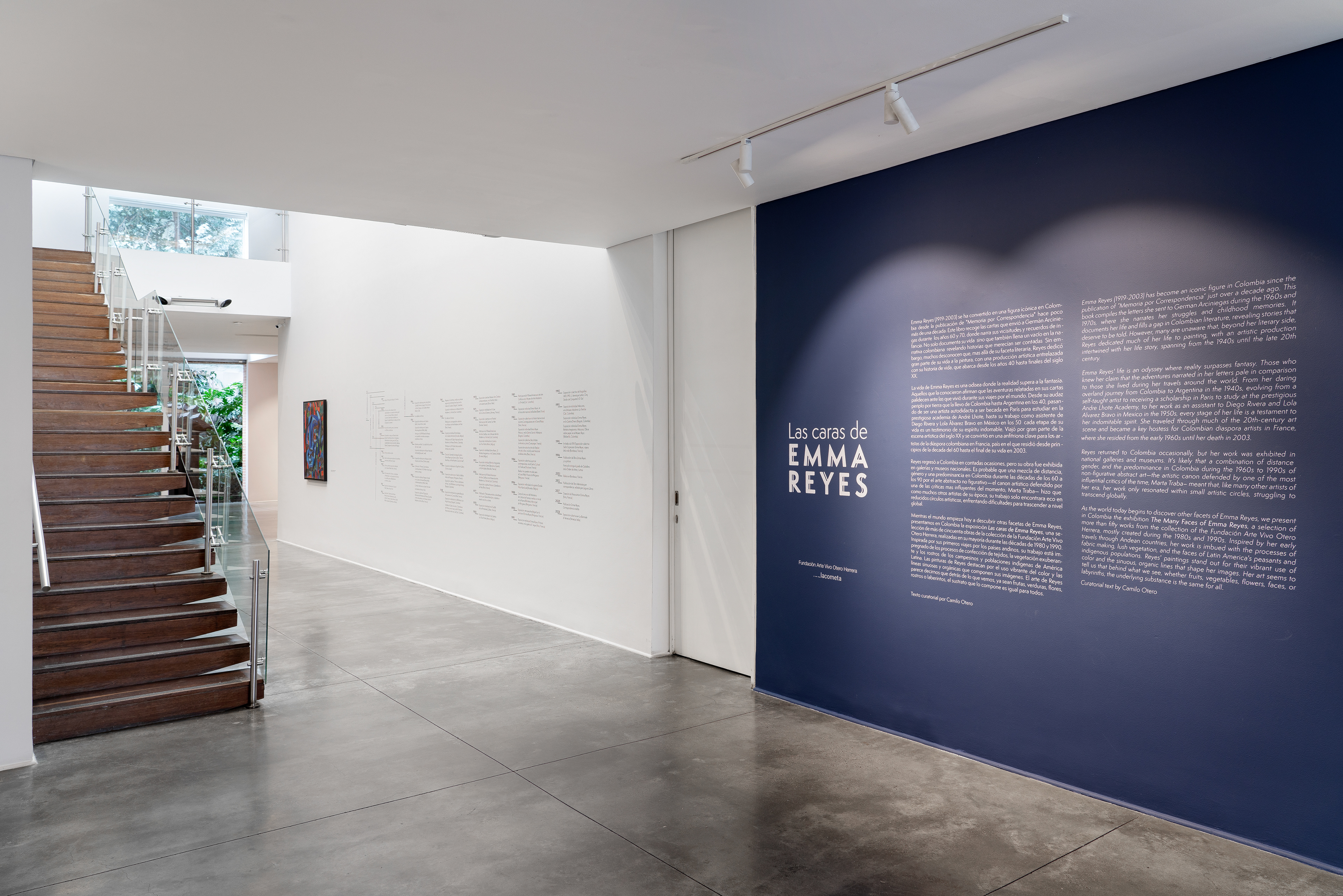 El despliegue museográfico de la exposición de Emma Reyes en la Galería La Cometa (Bogotá) buscó fortalecer el relato curatorial desde la construcción de la identidad de la muestra. Para ello, se desarrollaron una línea de tiempo y un plegable que acompañaban al visitante durante el recorrido por los dos pisos de la galería.