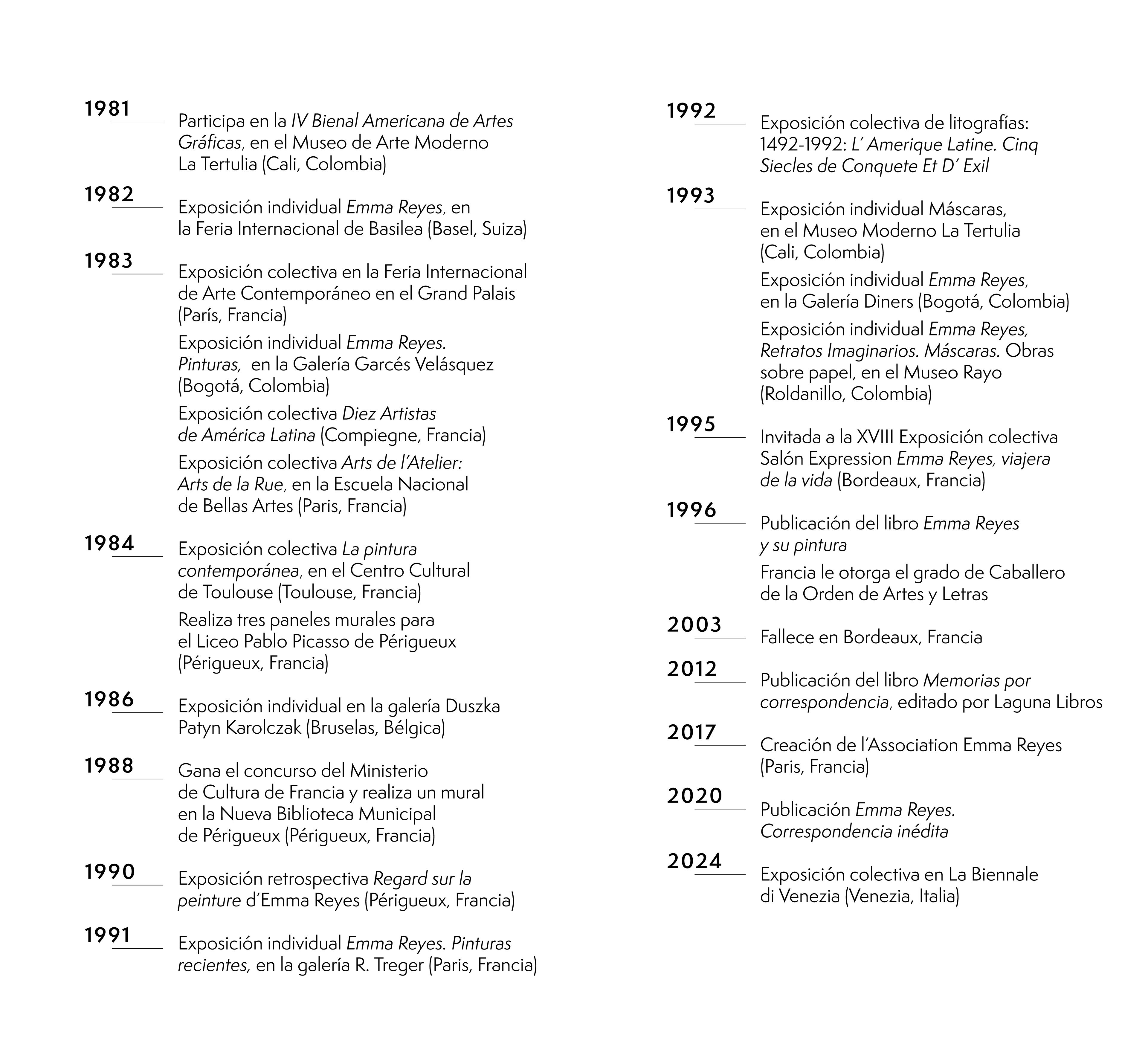 Detalle Línea de tiempo sintetizada Vida y obra Emma Reyes